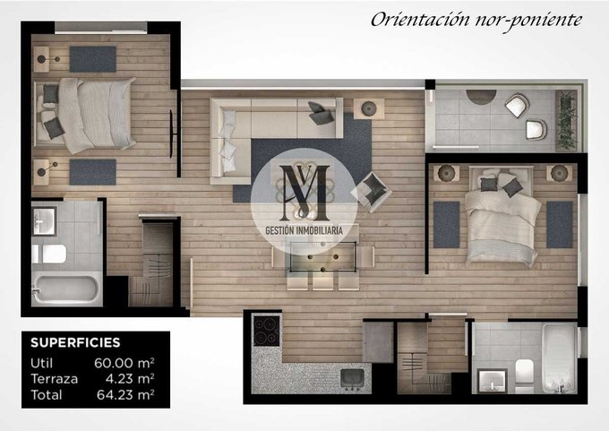 -60 m construidos + 4,23 m de terraza