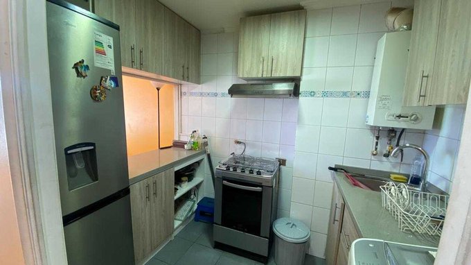 Departamento se distribuye en cocina semi abierta, amplio living y comedor, terraza amplia con vista, baño en pasillo completo, un dormitorio con closet, y un segundo dormitorio en suite con baño completo. Incluye estacionamiento y bodega.