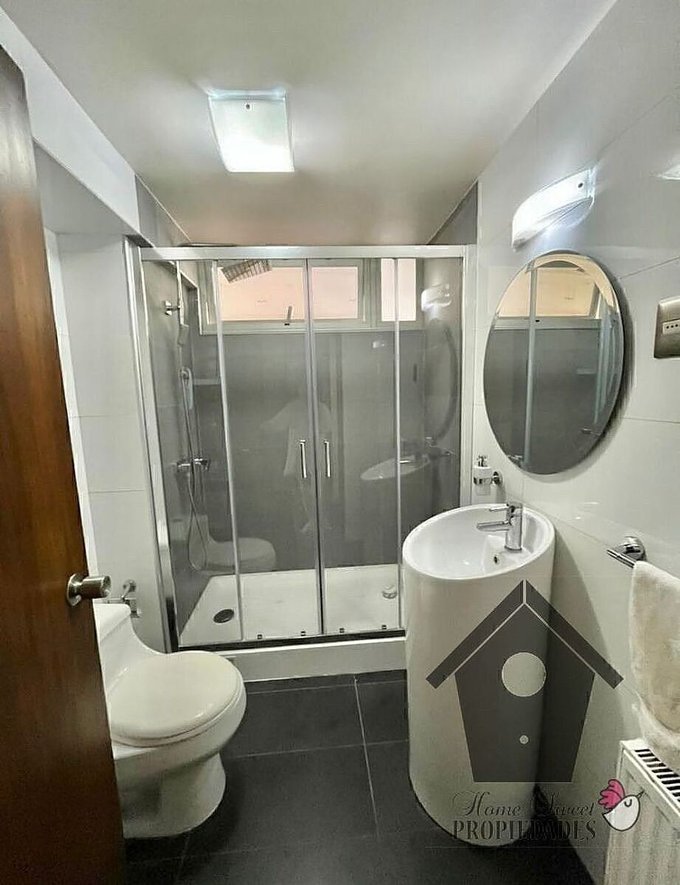 El departamento tiene piso flotante en living comedor, pasillos y dormitorios, porcelanato en baños y cocina, ventanas con termopanel. Baños con ventana, y baño principal con tina de hidromasaje. Baño común con pileta y showerdoor. Cubiertas de cuarzo en la cocina. Radiadores para calefacción central (no conectados) Agua caliente con calefon, Estacionamiento Techado.