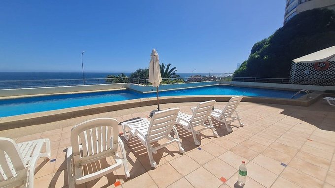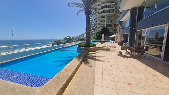 Se arrienda amplio y cómodo departamento amoblado de 2 dormitorios y 2 baños, ubicado en primera línea, con una espectacular vista al mar.