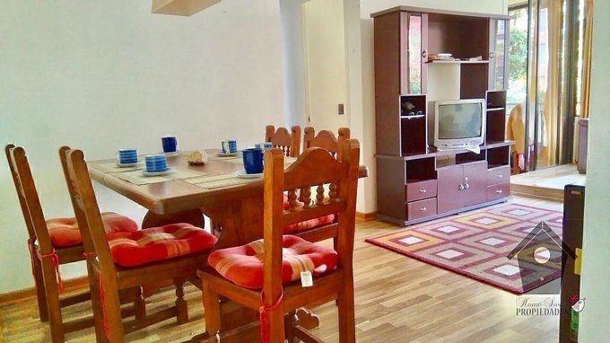 Departamento tiene piso flotante en living comedor y dormitorios, termopanel en ventanas de todo en departamento, cerámica en baños y cocina. Cocina amoblada, Calefacción con Aire acondicionado. Agua caliente con Calefon en la Logia. Cortinas y luminarias instaladas.