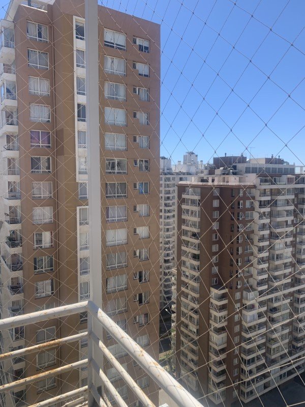 vista al Poniente con malla de protección para niños y estacionamiento en primer subterráneo.