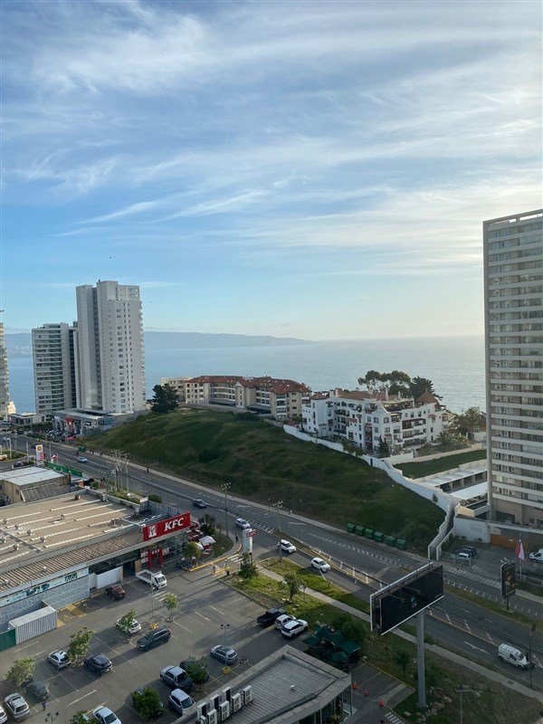 Arriendo moderno y luminoso departamento en Edificio First, en Reñaca ,sector Costas de Montemar, frente a centro comercial con espectacular vista poniente al mar.