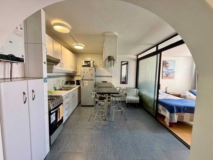 Estratégico departamento en arriendo completamente amoblado y remodelado, cuenta con un Dormitorio amplio con una cama nueva, tiene un balcón y otro espacio de habitación, habilitado con dos camas. Céntrico y conectado a la avenida la marina y al borde costero y centro de Viña de Mar.