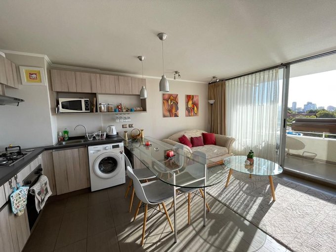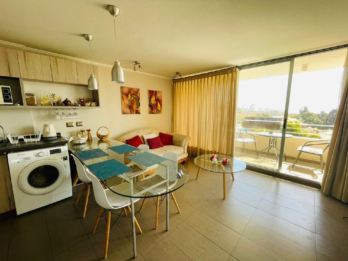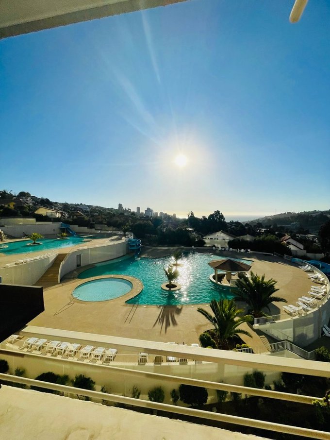 Arriendo, departamento amoblado en Condominio Jardines de Reñaca, amplio, luminoso y con vista panorámica al mar. Orientación norponiente que asegura excelente luz natural.