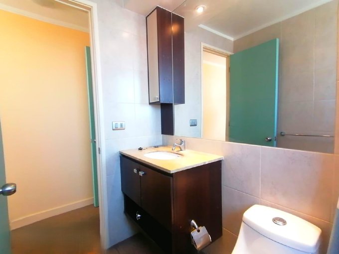 Amplio y soleado, 2 dormitorios, 2 baños, estacionamiento techado. Piso 13 con terraza, malla de seguridad y vista poniente. Cocina separada y equipada, dormitorio principal en suite.