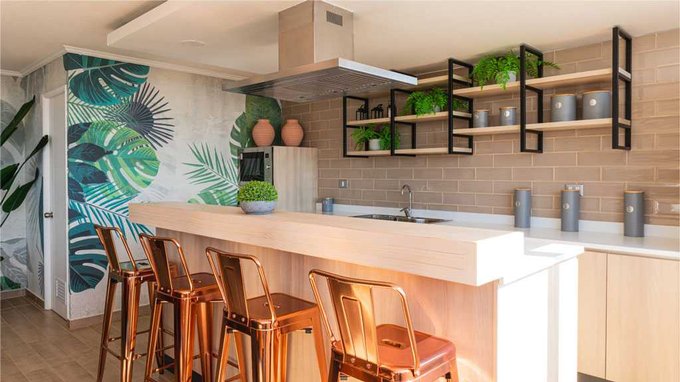 Cocina americana equipada (encimera, horno y campana)