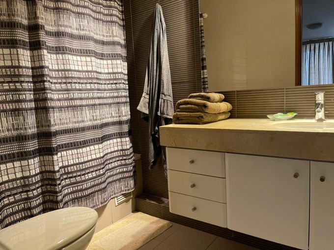El edificio cuenta con dos piscinas (interior temperada y exterior), gimnasio, sauna, lavandería, estacionamientos de visita. Seguridad y accesos controlados 24/7
