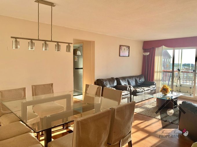 Piso flotante en living comedor y pasillos. Cerámica en baños cocina y terraza, alfombra en dormitorios. Terraza Cerrada. Cocina amoblada. Mampara de separación entre las zonas comunes y los dormitorios. Dormitorios con closet. Ambos baños con tina. Agua caliente con calefón en la logia.