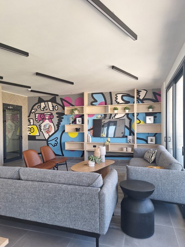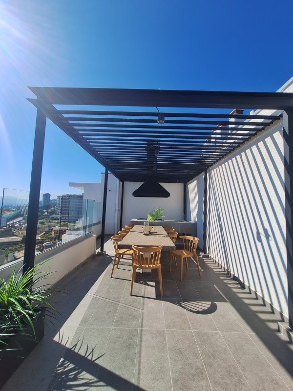 El edificio posee una terraza panorámica que permite una vista despejada del paisaje de Viña del Mar y el Puerto de Valparaíso, y está equipada con un Lounge Bar con cocina integrada y mesa de pool, además de dos quinchos al aire libre, bancas y fogones.
