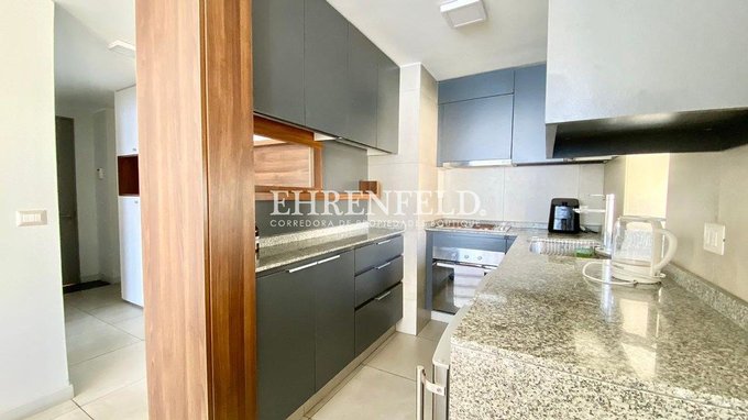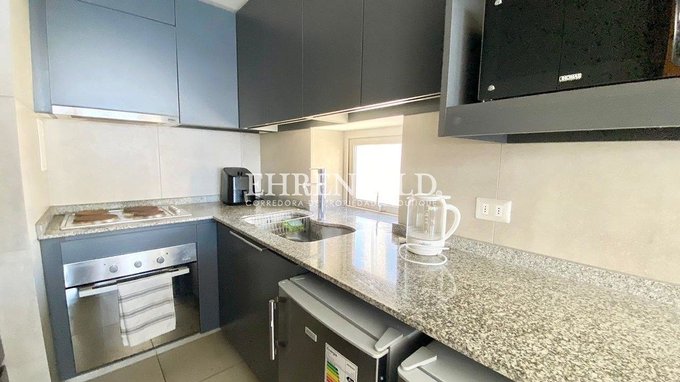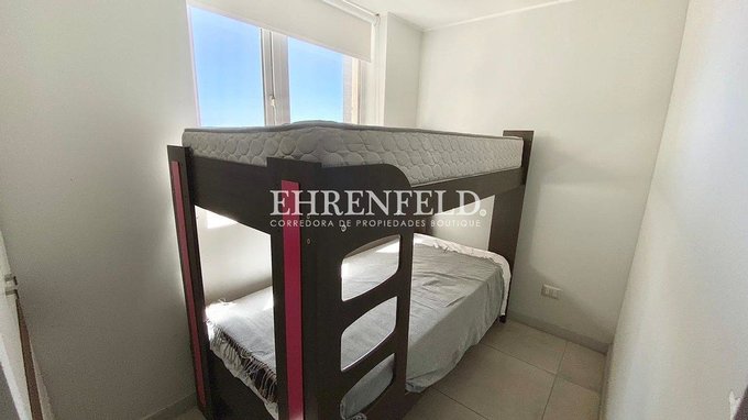 Departamento amoblado de 3 dormitorios y 2 baños, cocina americana totalmente equipada. Living y dormitorio principal con salida a la terraza con vista al mar.