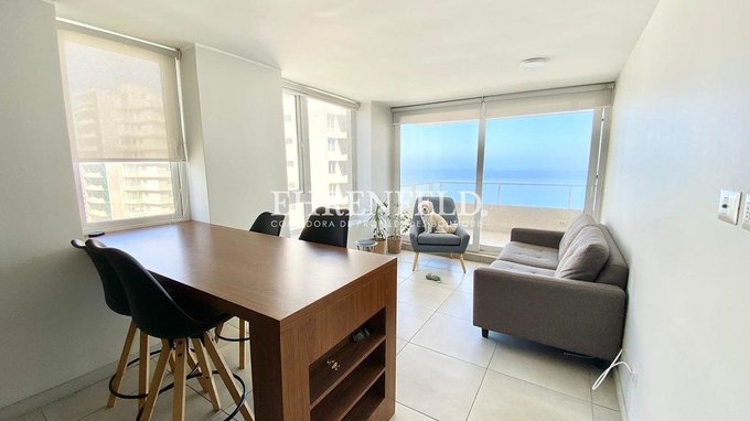 Departamento con vista al mar en altura, ubicado en el mejor sector de Reñaca Norte, cercano a comercio, restaurantes y locomoción prácticamente a la puerta.