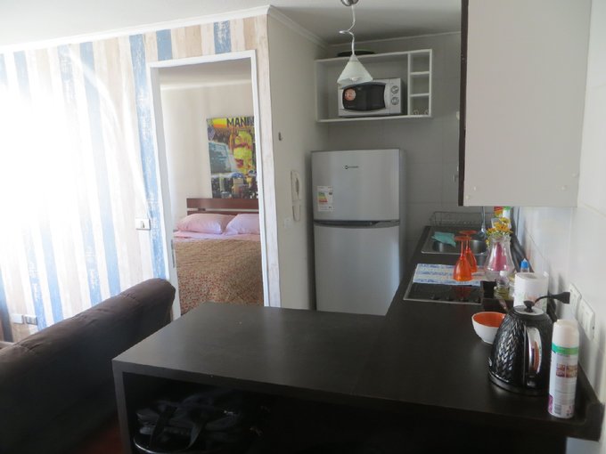 Living comedor amplio ,2 dormitorios 1 baño. Amplios closet. Cocina equipada con muebles, encimera, cocina con horno y eléctrica 1 balcón que cubre living y dormitorio. Equipamiento y amoblados conservados. NO TIENE Estacionamiento