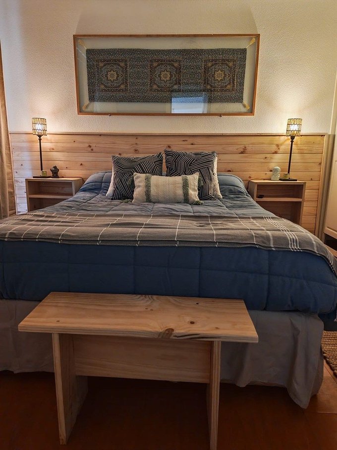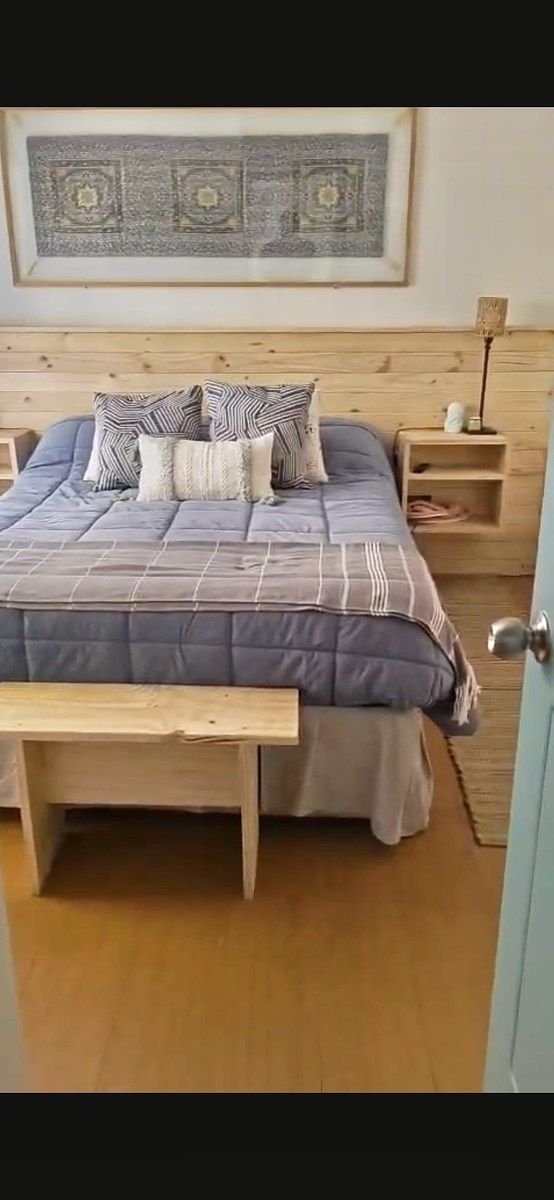 Piso de cerámica en living comedor, pasillos y baño. Flotante en dormitorio. Estar comedor y dormitorio equipados como se muestra en las fotos. Cocina amoblada y equipada con encimera a gas, horno eléctrico empotrado, campana extractora, refrigerador, microondas, vajilla y utensilios. Agua caliente con calefón