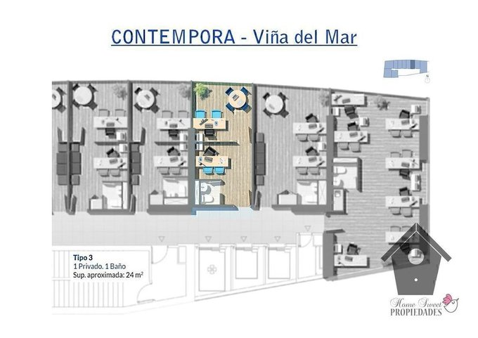 Oficina en la unión de Calle Limache con Viana en el Nuevo edificio Contempora, frente al Hospital Clínico de Viña del Mar y a pasos del Hospital Fricke. Tiene una recepción, un privado y un baño. La oficina se entrega con cortinas sunscreen.