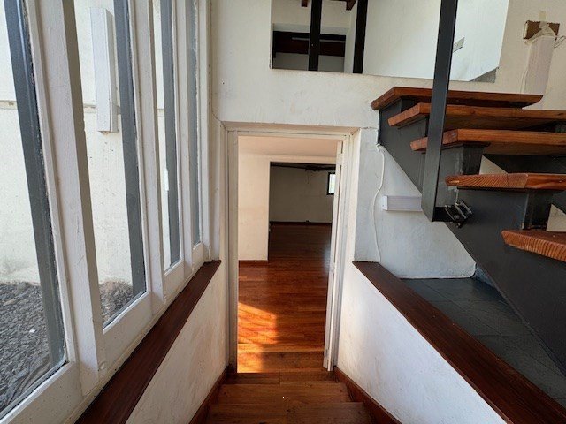 Se sube mediante una escalera de madera y fierro donde se ubican 3 dormitorios y 2 baños, principal en suite con salida a un balcón y 1 sala de estar. (También podrían ser 3 oficinas y una recepción). Tiene piso de piedra pizarra.