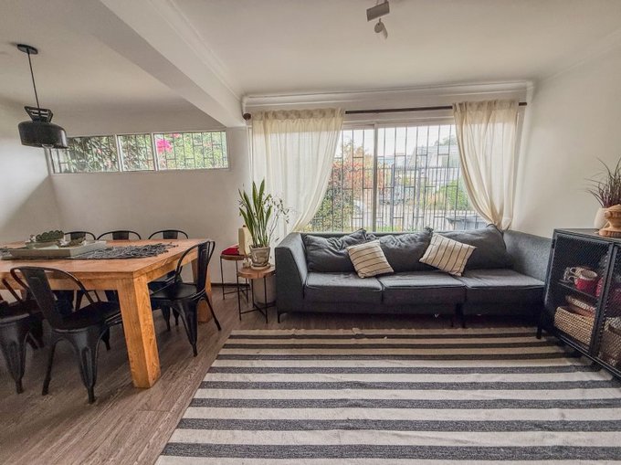 Living y comedor en conjunto, amplia cocina con espacio para la logia y comedor de diario.