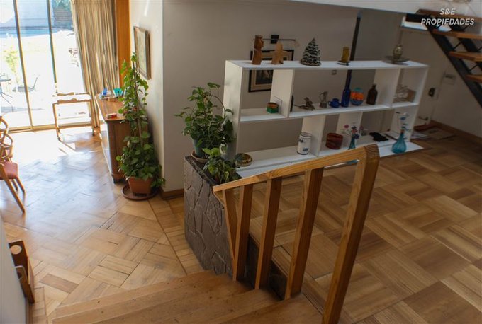 Destaca su imponente hall de acceso de doble altura, que entrega carácter y calidez desde el primer momento, junto a finos detalles como piso de parquet y puerta principal de madera maciza.