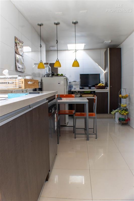 La cocina es amplia y funcional, con grandes mesones y abundante capacidad de almacenamiento, ideal para la vida familiar.