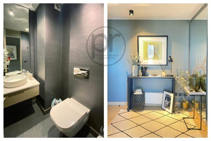 Piso de ingeniería de madera, pisos de porcelanatos en baños y terrazas