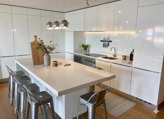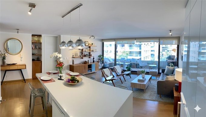 - Cocina integrada full equipada (refrigerador empotrado, lavavajillas, horno, microondas y encimera. Todo marca FDV)