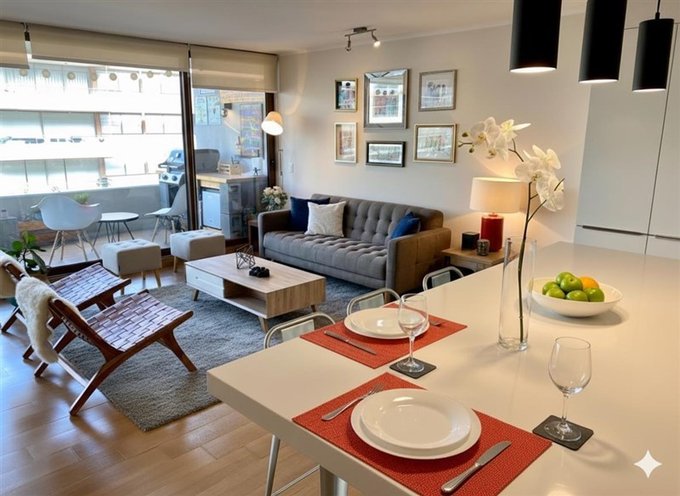 Luminoso departamento en 5 piso, a pasos de Parque Arauco, Paseo El Tamarugo y El Mañío. Excelente conectividad y entorno tranquilo.