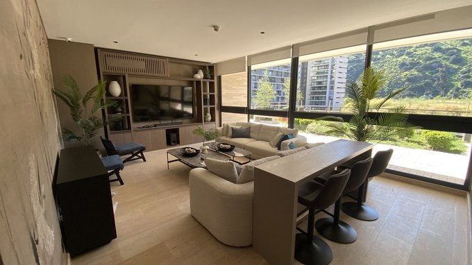 Características y Terminaciones de Lujo: Cocina equipada con horno eléctrico, microondas con grill, encimera vitrocerámica, campana empotrada, refrigerador y lavavajillas panelados Teka. Conectividad para lavadora y aire acondicionado. Espacios amplios y luminosos con piso vinílico. Baño con piso radiante, seca toalla alemana, espejo con defroster, shower door y cubierta de cuarzo o mármol Venatino. Ventanas termopanel PVC Deceuninck para mejor aislamiento.