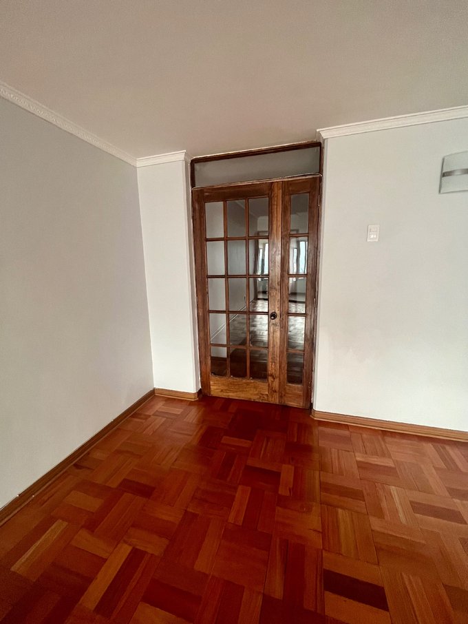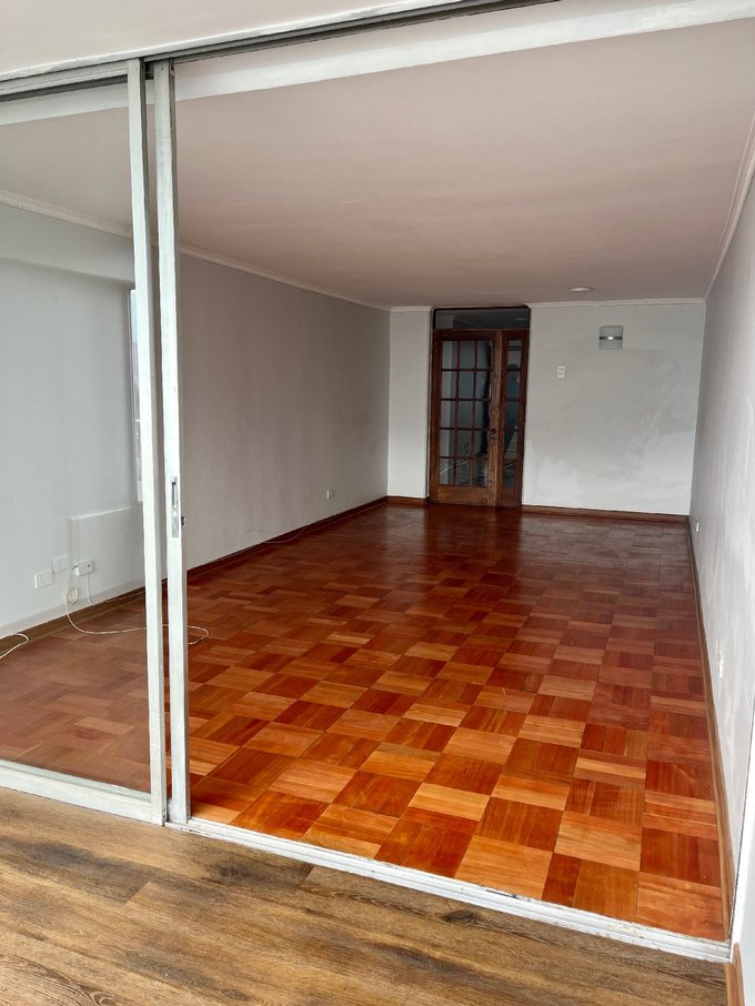 Piso de parquet y termopanel.