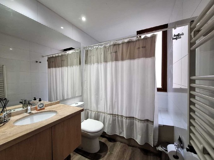 La propiedad cuenta con un hall de entrada acogedor, una cocina americana equipada y muy bien diseñada, con salida a una logia. El living es amplio y luminoso, con salida a una terraza con vista despejada.