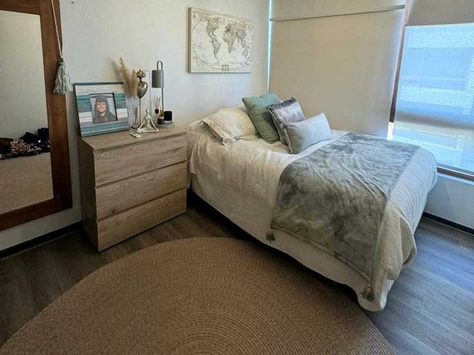 El sector de dormitorios es independiente y cuenta con dos dormitorios que comparten un baño con luz natural. El segundo dormitorio también puede ser utilizado como un escritorio. El dormitorio principal es en suite, con un walk-in closet y un baño con luz natural.