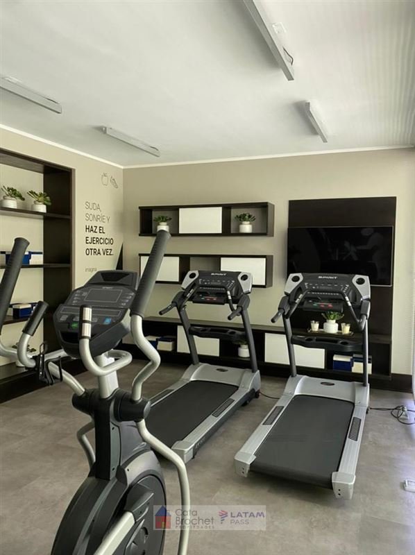 Hall, living y comedor con salida a terraza, 2 dormitorios y 2 baños (principal en suite con wak in closet), cocina cuadrada amoblada y equipada, con comedor de diario, despensa y logia.