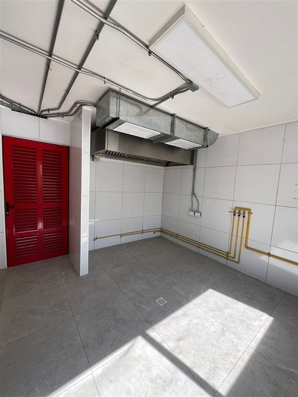 2 cocinas industriales con campana individual con inyección y extracción, termo de 80 lts. y gas de cañería.
