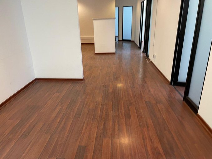 Cuenta con 1 sala de reunión, recepción, planta libre para al menos 8 estaciones de trabajo, 5 privados, kitchenette, 3 baños, aire acondicionado y calefacción.
