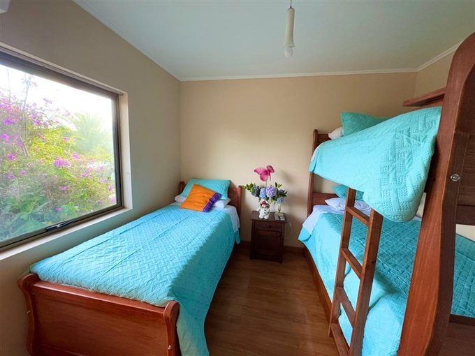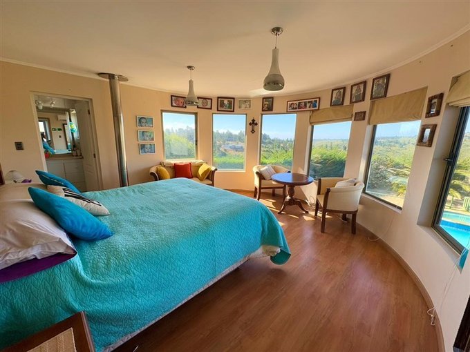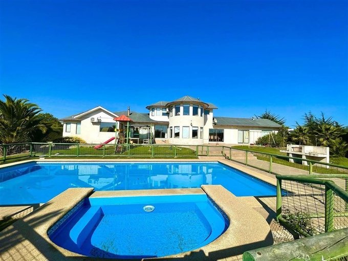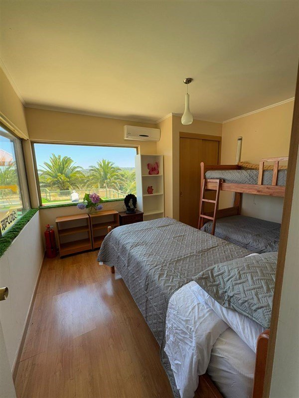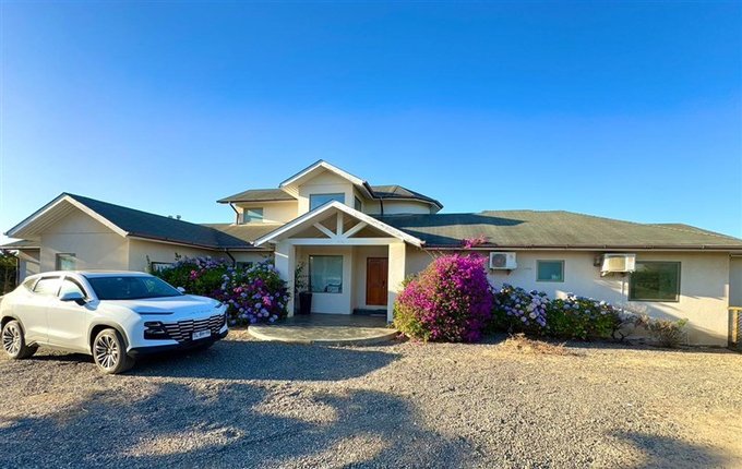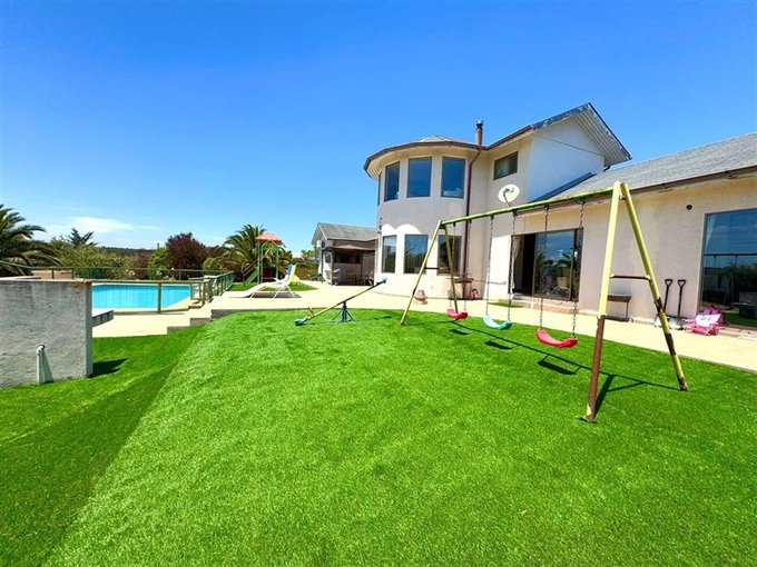 Ubicada en Parque Santa María de algarrobo, Casa de hormigón con 268 mt2 construidos en dos pisos , en el primero tiene sala de juegos, posee 4 dormitorios ; 1 en suite y 3 con baños ) 1 de visita , pieza de servicio con baño en suite. Tiene una sala de juego.