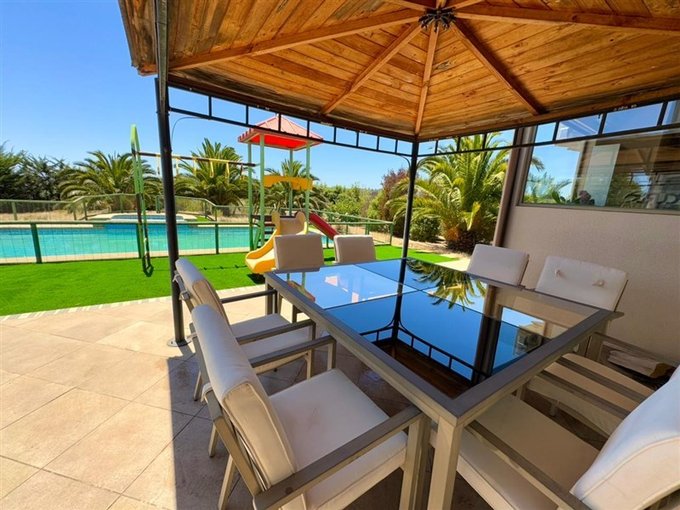 En el jardín tiene una piscina de 12x 6 , Jacuzzi externo, Quincho , posee muchos frutales Limón, nogal, 2 de almendras, 3 de pera, 3 de manzanas 2 de higos, cerezo, palmeras