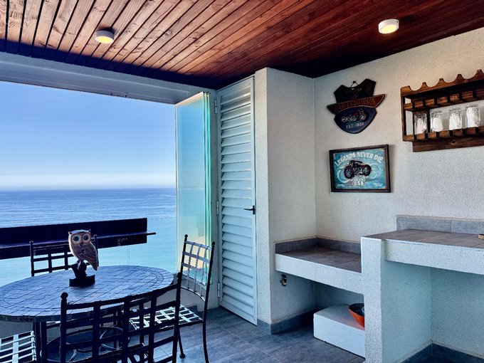 -Amplia terraza con vista al mar, cerrada con ventanales plegables tipo acordeón (apertura total), perfecta para usar en --cualquier época del año.