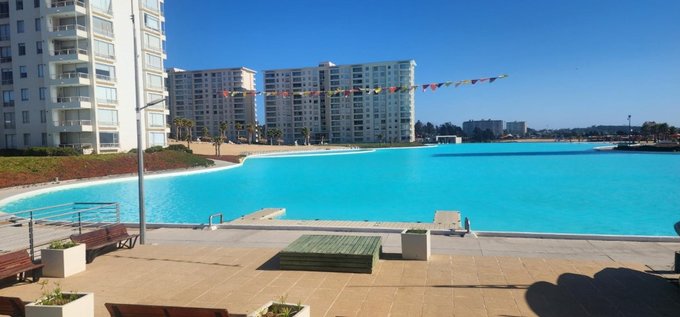 Excelente departamento ubicado en Edificio Océano del Condominio Laguna Bahía con acceso por avenida parque Norte 200 en la comuna de Algarrobo. El Condominio tiene acceso controlado las 24 horas del día, cámaras de vigilancia en circuito, amplia laguna artificial con playa, gimnasio, áreas verdes comunes y estacionamiento para visitas.