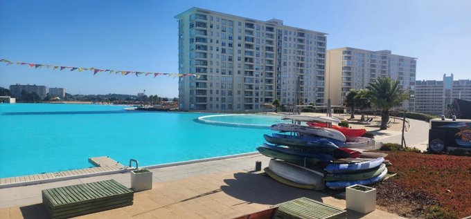 Excelente departamento ubicado en Edificio Océano del Condominio Laguna Bahía con acceso por avenida parque Norte 200 en la comuna de Algarrobo. El Condominio tiene acceso controlado las 24 horas del día, cámaras de vigilancia en circuito, amplia laguna artificial con playa, gimnasio, áreas verdes comunes y estacionamiento para visitas.