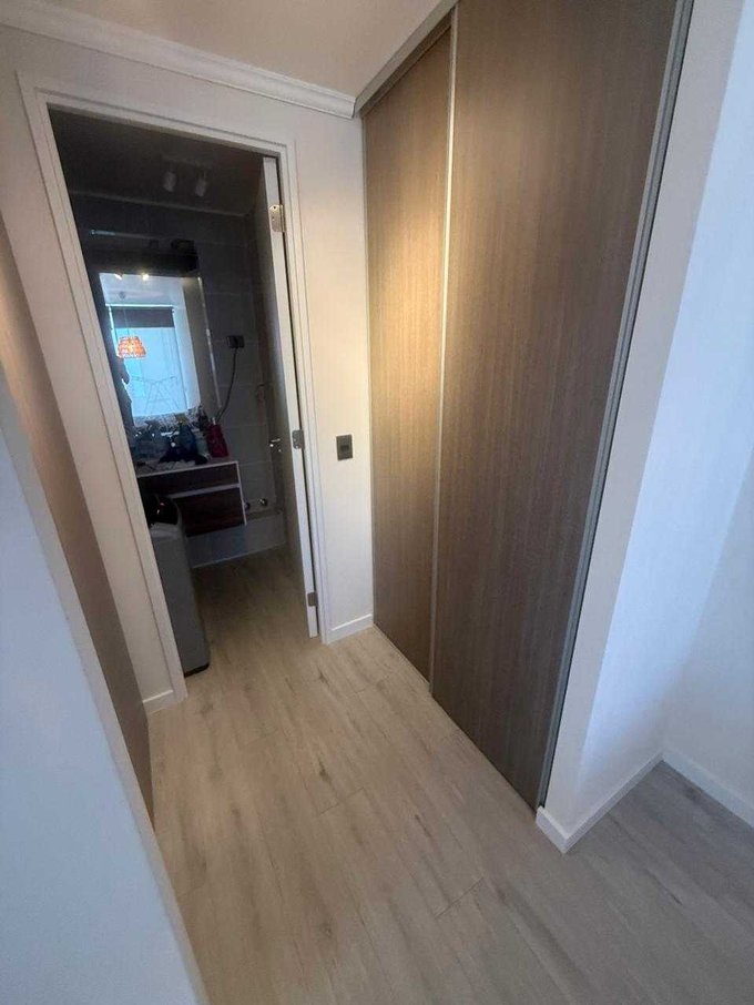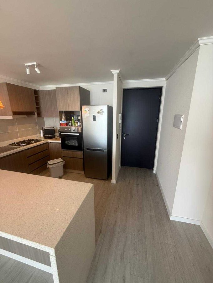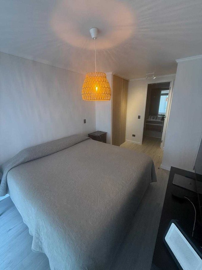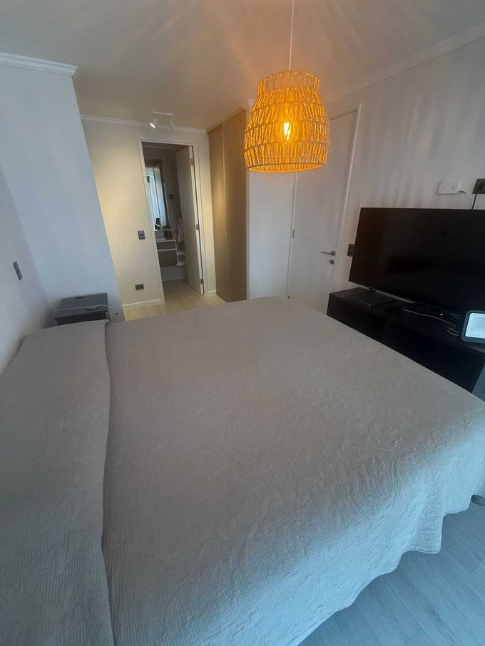 Impecable departamento de dos dormitorios en suite, amplia terraza, con todo en perfecto estado de mantención. Papel mural intacto.