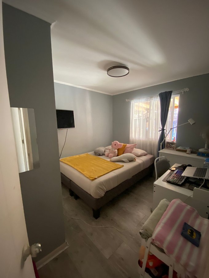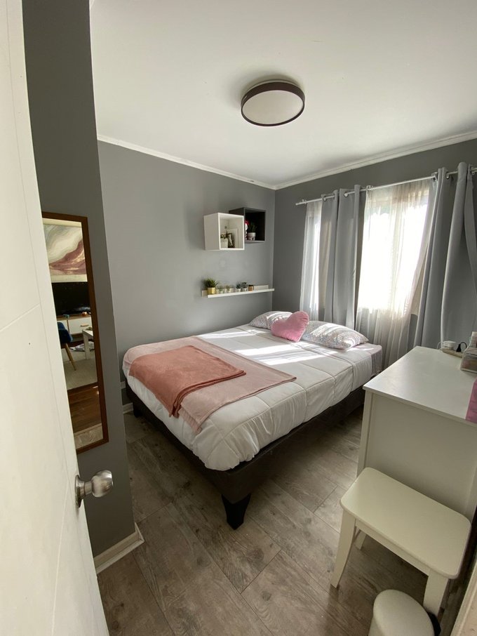 Dormitorio Principal Ampliado: Eliminamos el baño pequeño original para transformar la habitación matrimonial en un espacio mucho más amplio y cómodo.