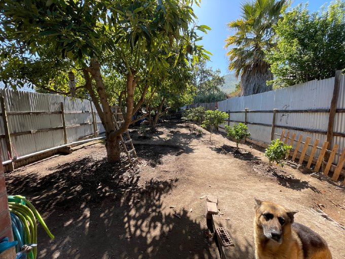 - Patio con árboles frutales en producción (platos y cítricos).