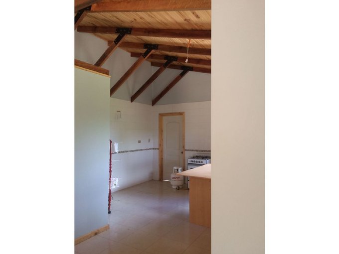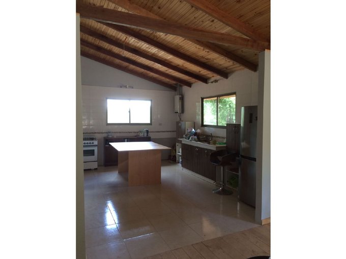 Cocina abierta con desayunador, cerámico de muro a muro y gran capacidad, luminosidad, calefont instalado y puerta para dar salida a patio continuo.
