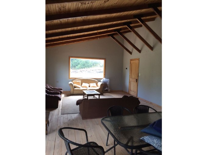 Con amplio Living comedor con vigas a la vista y piso de madera entregando un ambiente campestre.