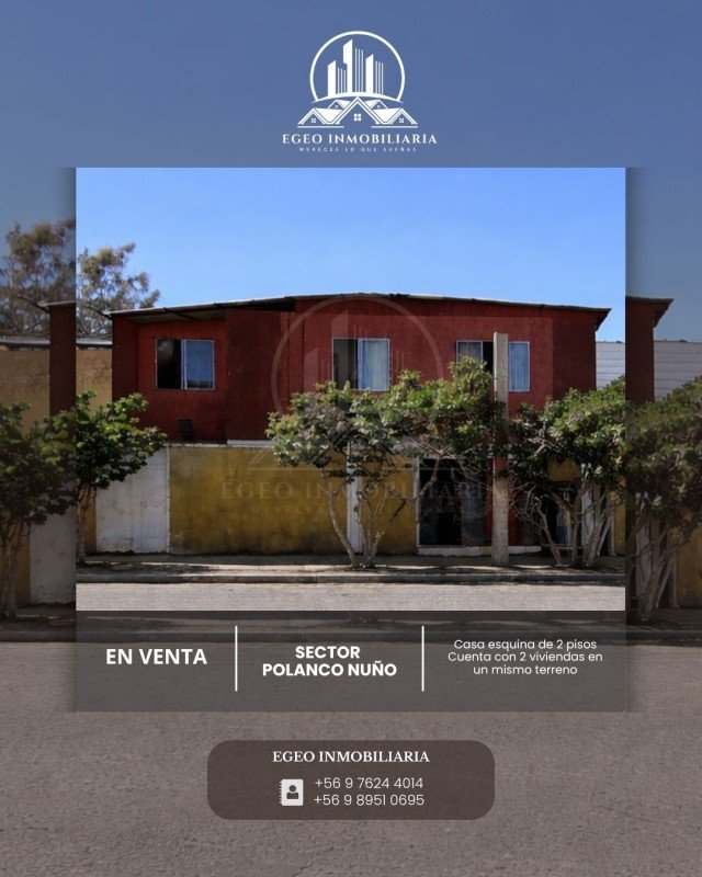 Casa esquina de 2 pisos ubicada en Población Santiago, sector Polanco Nuño. Propiedad con excelente accesibilidad por calle Cobija y Pedro de Valdivia, en un entorno tranquilo y con buena conectividad.
