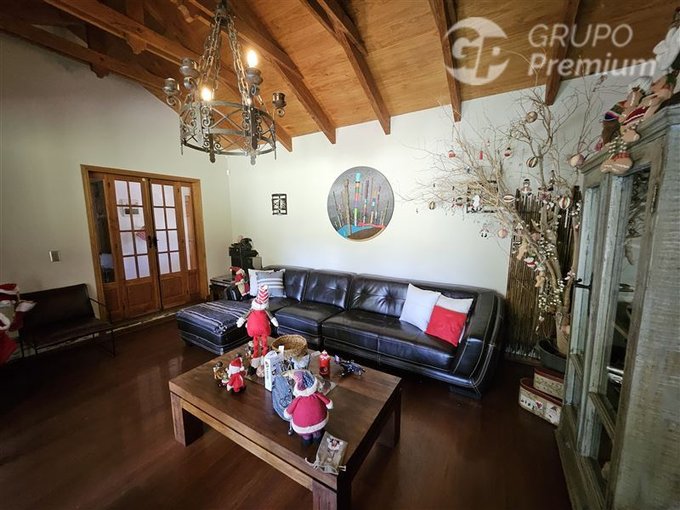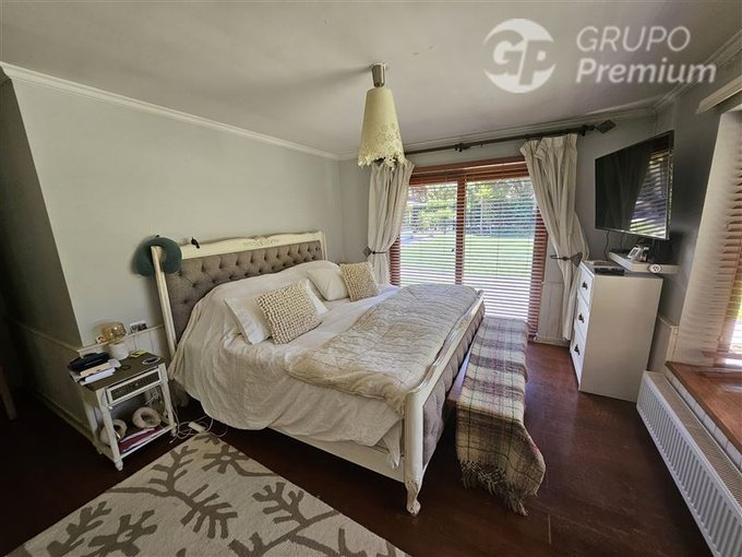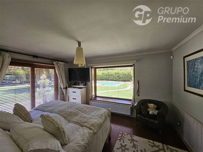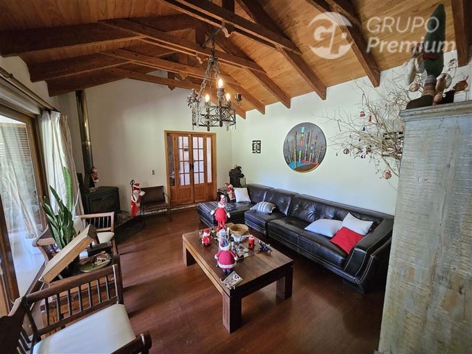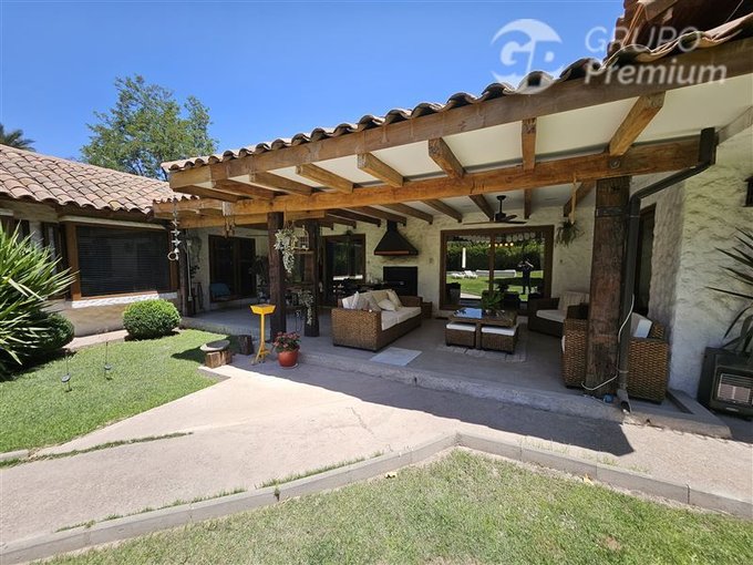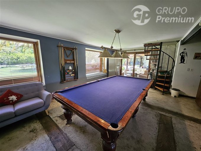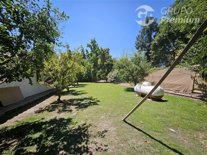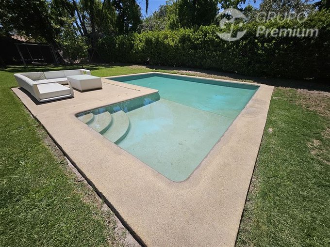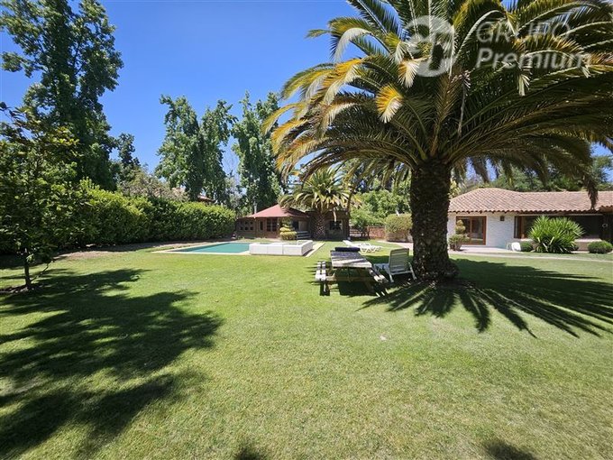 Adicionalmente la propiedad cuenta con amplia piscina de 56m2, enormes jardines con arboles frutales los cuales son regados con derechos de agua del río Maipo.