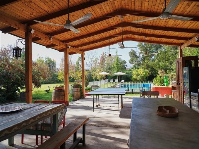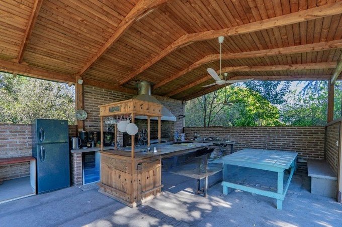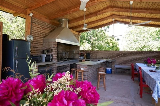 Quincho abierto equipado con horno y parrilla, ideal para celebraciones y reuniones sociales.