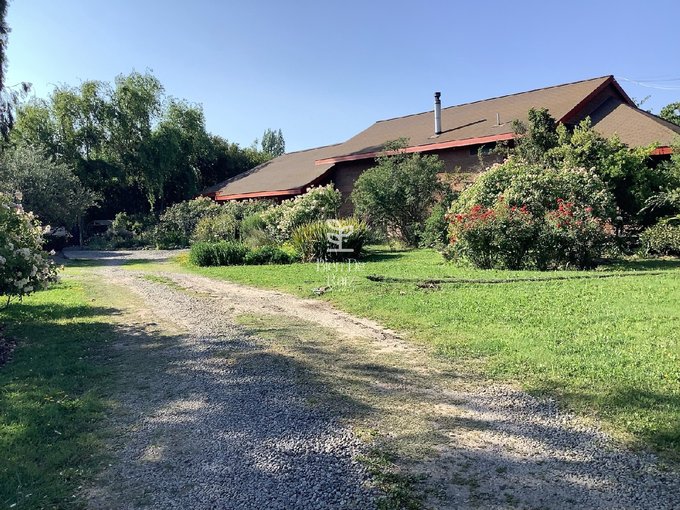 La parcela está constituida por un terreno de 6.492 m2, con un magnífico jardín completamente consolidado, con sectores de árboles altos y frondosos que aportan abundante sombra y también rincones de flores variadas que llenan de colorida y alegre belleza al entorno; cuenta, además, con tres terrazas, bodega, leñera, juegos infantiles, estacionamiento cubierto para 5 vehículos, y una gran piscina.
