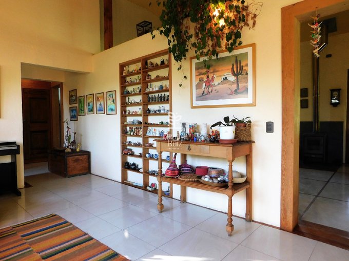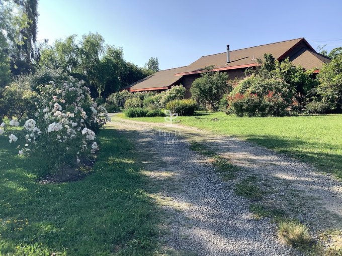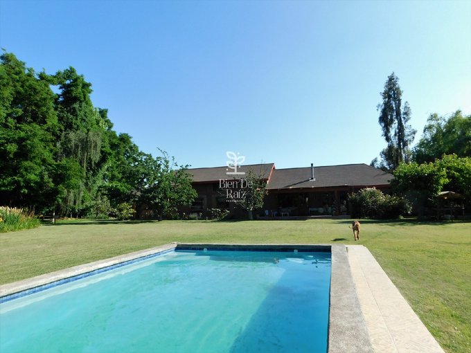 La parcela está constituida por un terreno de 6.492 m2, con un magnífico jardín completamente consolidado, con sectores de árboles altos y frondosos que aportan abundante sombra y también rincones de flores variadas que llenan de colorida y alegre belleza al entorno; cuenta, además, con tres terrazas, bodega, leñera, juegos infantiles, estacionamiento cubierto para 5 vehículos, y una gran piscina.