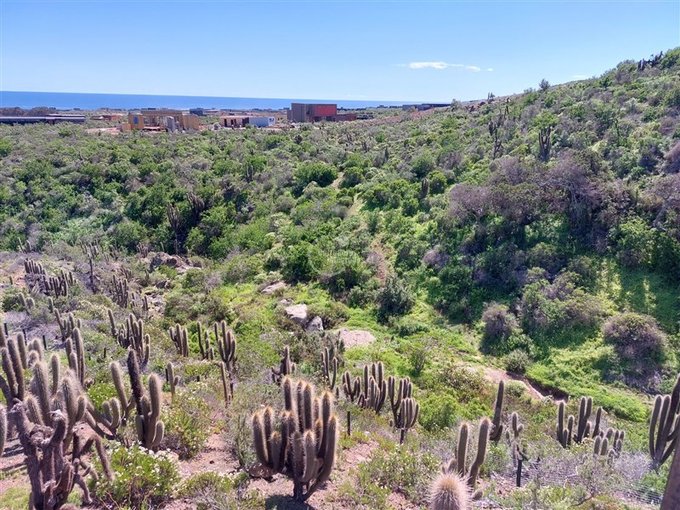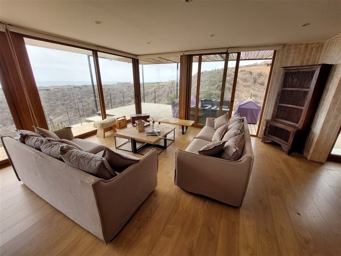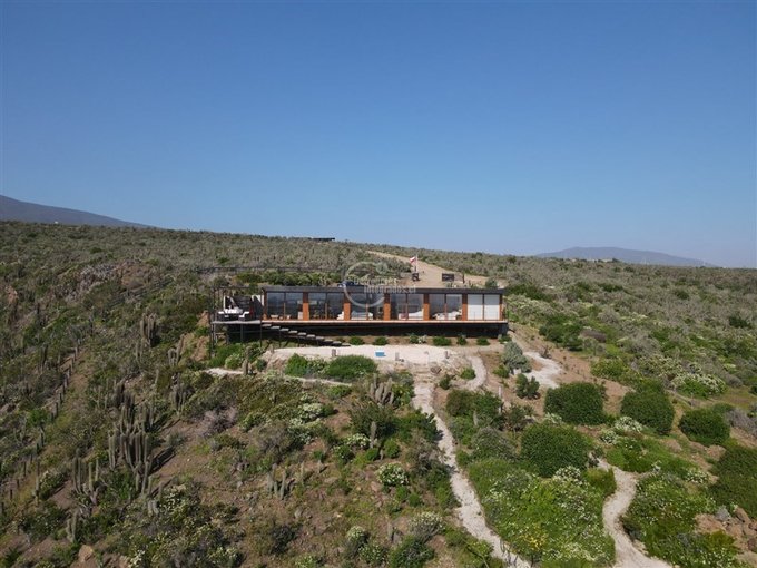 Espectacular casa de 174 m más 40 m de terraza perimetral, en terreno de 6897 m en el exclusivo condominio Agua Dulce, en la localidad de Huentelauquén. La casa está emplazada sobre una meseta, lo que garantiza una vista panorámica al mar, sin riesgo de obstrucción.
