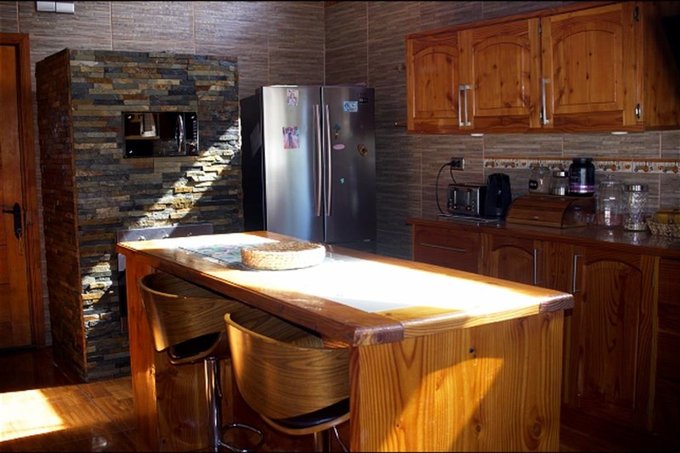 La cocina es un espacio protagonista, equipada con abundante mobiliario en Pino Oregón que aporta calidez, carácter y funcionalidad. Para los meses más fríos, la propiedad dispone de dos estufas de combustión lenta, ideales para crear un ambiente acogedor en cada rincón del hogar.
